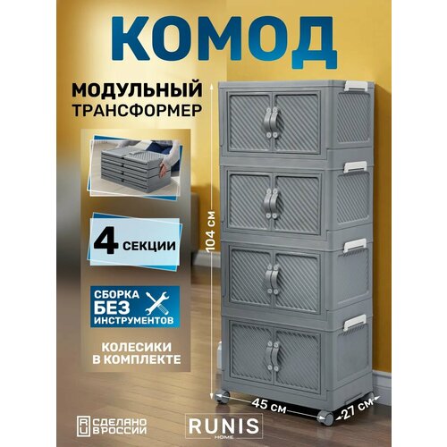 Купить Комод RUNIS Home, пластик, серый, модульный, для коридора, 4 секции 100х 45х27 см с доставкой по всей России. Комод RUNIS Home, пластик, серый, модульный, для коридора, 4 секции 100х 45х27 см: сравнение цен, характеристики, фото, актуальное наличие и цены.