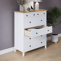 Ящики комода отшлифованы и покрыты бесцветным лаком, оснащены оригинальными роликовыми направляющими, обеспечивающими плавное и бесшумное открывание и закрывание.