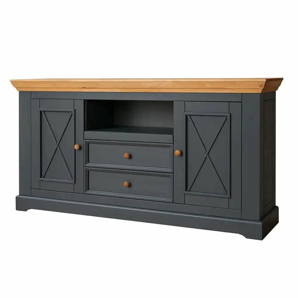 Купить Комод с ящиками «Фламберже» натуральное дерево, массив сосны, 168х42х88 см. цвет- серый(графит)/бейц-масло с доставкой по всей России.