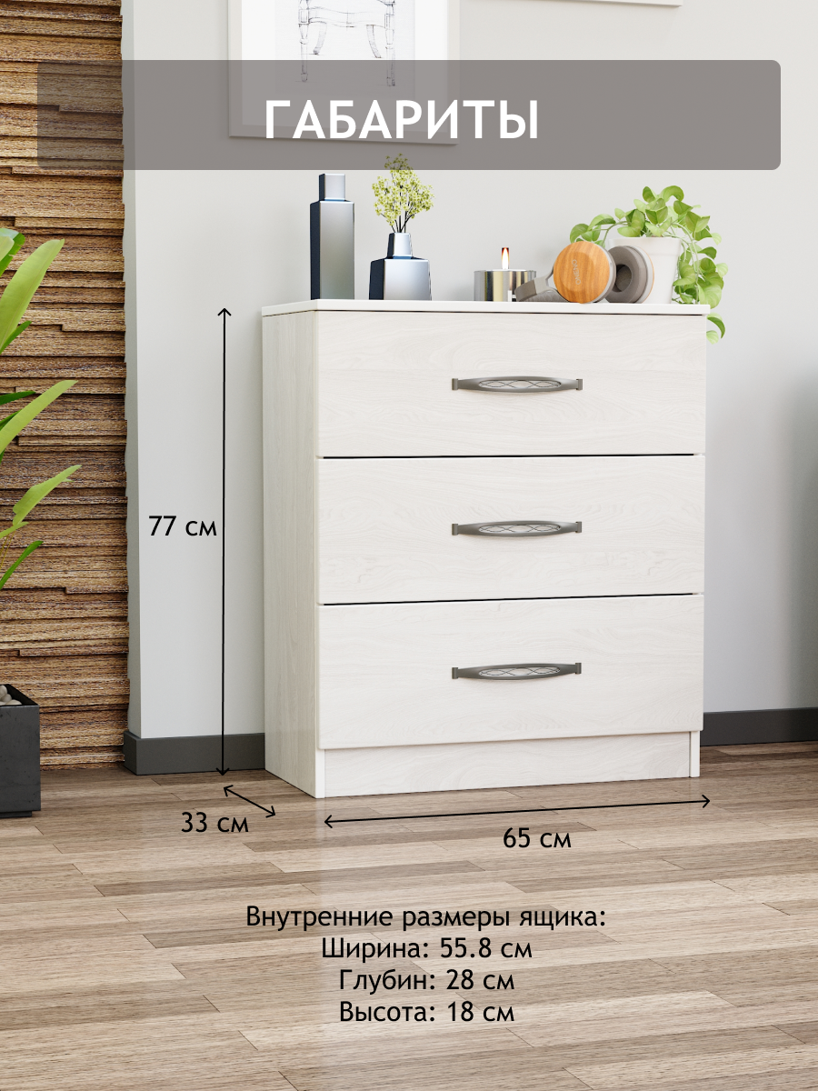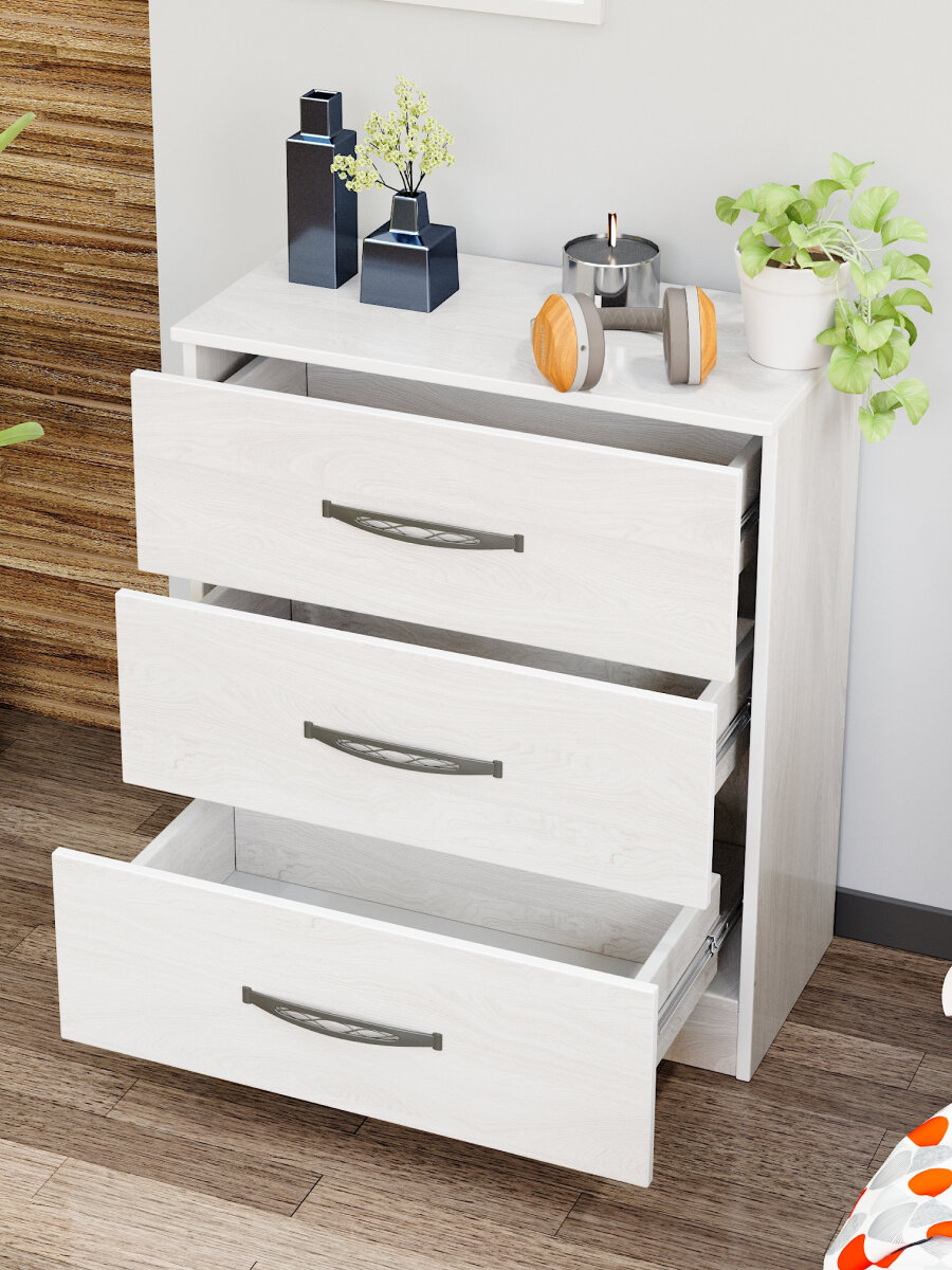 Комод для вещей деревянный с тремя ящиками станет отличным дополнением интерьера. Комод с ящиками подходит для прихожей, спальни, гостиной или комнаты. Тумба комод идеально хранит одежду и другие необходимые вещи. Наличие ящиков позволяет организовать пространство и поддерживать порядок. Вы можете использовать его как комод в коридоре, чтобы поддерживать порядок. Поместите туда обувь, аксессуары или платки — все всегда будет под рукой. Комод с ящиками поможет организовать пространство наилучшим образом. Белый комод подходит для спальни и будет отличной прикроватной тумбой. Узкий комод с выдвижными ящиками занимает мало места, но предлагает много возможностей. Комоды подходят даже для небольших помещений, не загромождая их. Белый комод гармонично впишется в любое оформление интерьера. Корпус высокого комода изготовлен из ЛДСП класса Е1, что обеспечивает долгий срок службы. В выдвижных ящиках используются шариковые направляющие полного выдвижения. Корпусная мебель нашего производства отличается высоким качеством. В комплекте идет качественная мебельная фурнитура, а легкая пошаговая инструкция гарантирует удобную самостоятельную сборку.