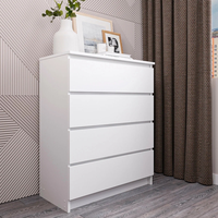 Белый комод для одежды Мори МК 800.4 - минималистичный современный комод с четырьмя выдвижными ящиками на роликовых направляющих. Корпус и фасады ящиков выполнены из белой гладкой ЛДСП. На фасадах ящиков отсутствуют ручки, функцию ручек выполняет сам фасад (его верхняя часть с внутренней стороны прямая под углом 90). Открывание ящиков производится за счет пространства между планками и фасадом. Корпус и фасады ящиков выполнены из белой гладкой ЛДСП. Хорошо оживит интерьер помещения, а также позволит создать функциональную обстановку в вашей квартире и будет радовать вас долгое время.