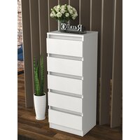Купить Комод с ящиками узкий деревянный для хранения вещей в коридор, прихожую, детский без ручек Белый с доставкой по всей России.