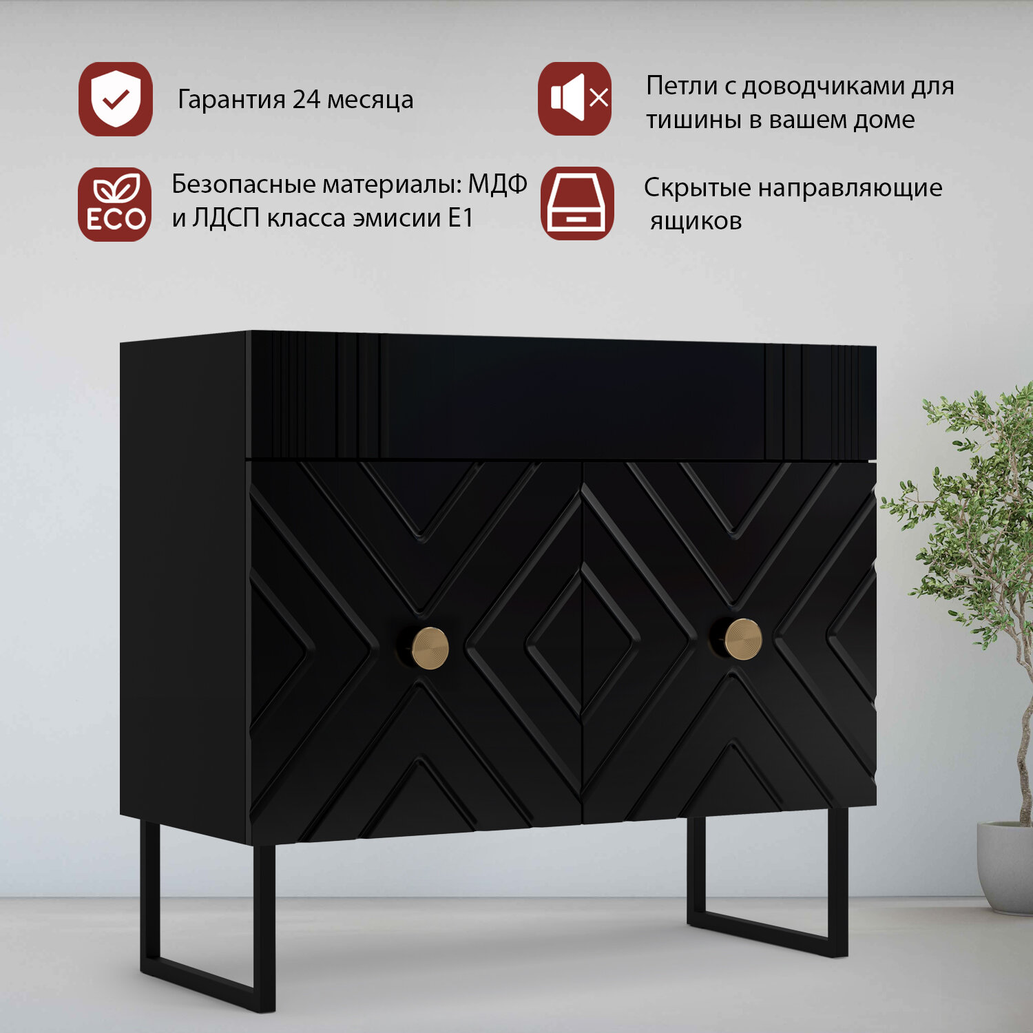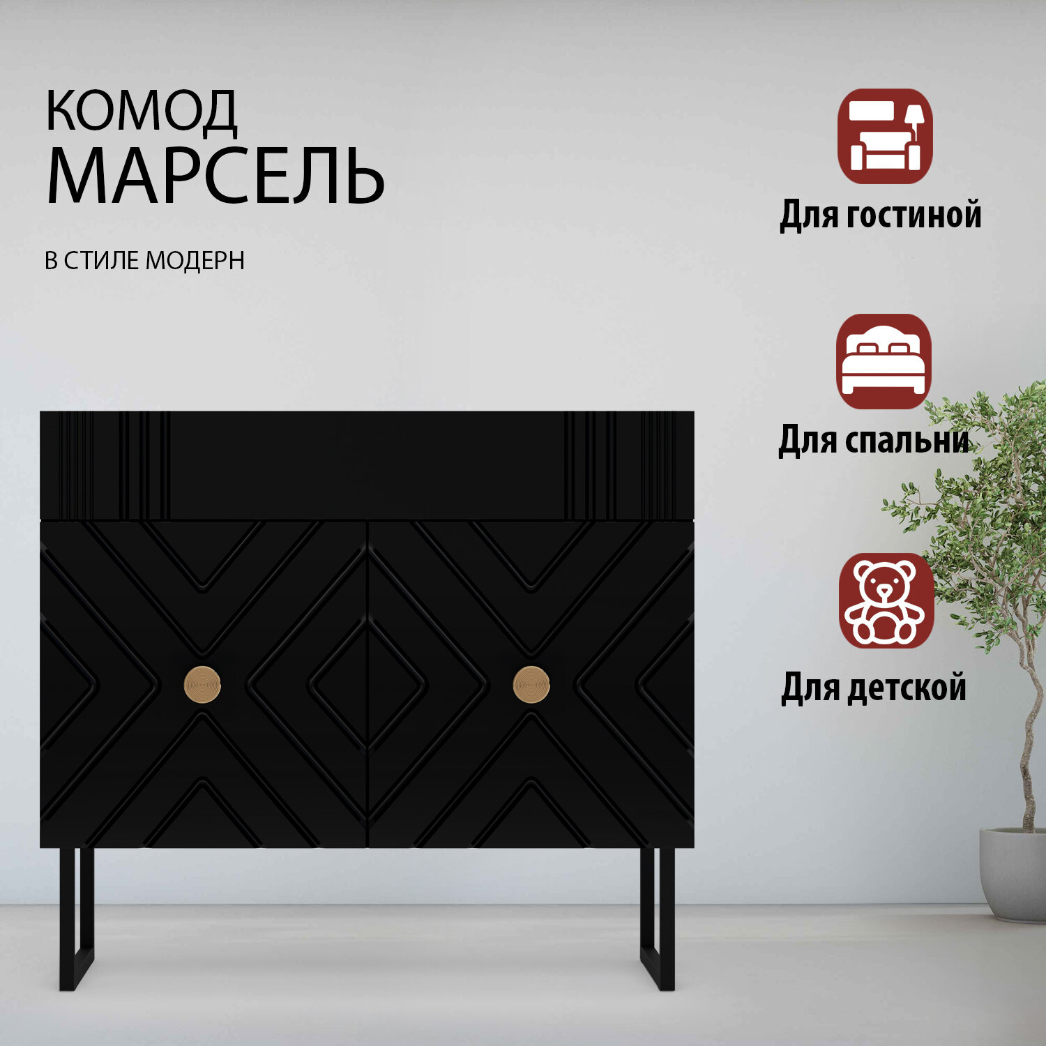 Комод из модульной коллекции «Марсель» может быть актуален к покупке, как в спальню, так и в гостиную комнату. Его конструкция отличается от классической и включает один выдвижной ящик и два отделения с дверками. Благодаря такому устройству модуль более функционален и удобен к эксплуатации.
