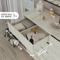 Комод выполнен в минималистическом стиле, что делает его подходящим для любого интерьера. Цвет дуб крафт белый и ламинированное покрытие корпуса и фасада из ЛДСП придают ему современный и элегантный вид.