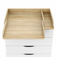 Особенностью данного комода является наличие раскладного пеленального столика размером 68х52 см. Углы пеленального столика и столешницы комода имеют скругление, что обеспечивает безопасность и комфорт при использовании.