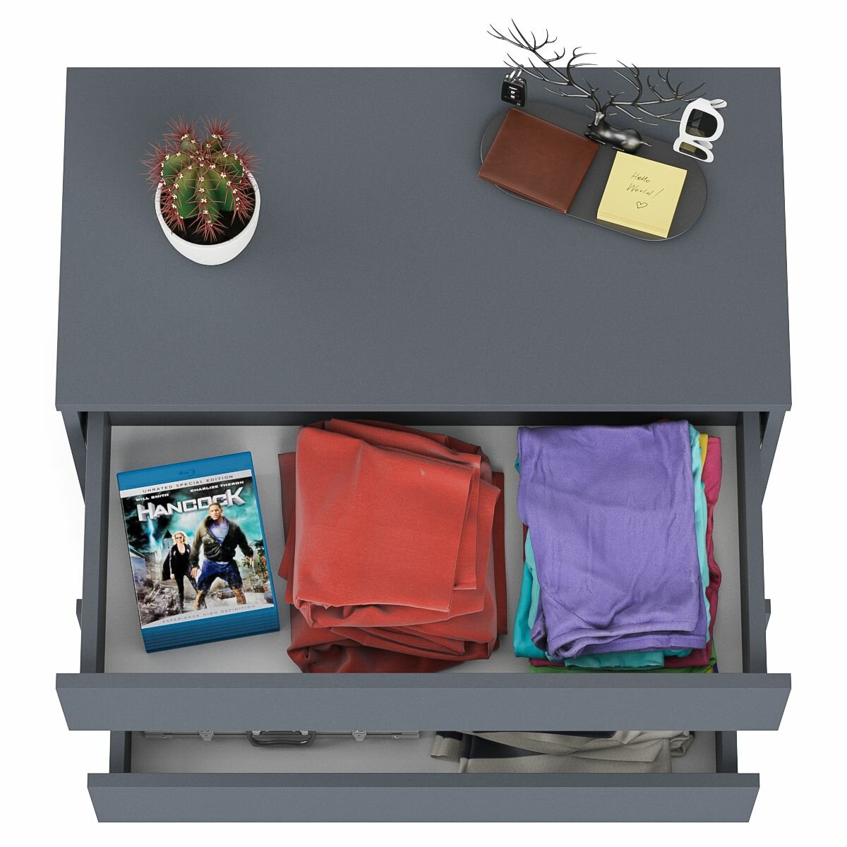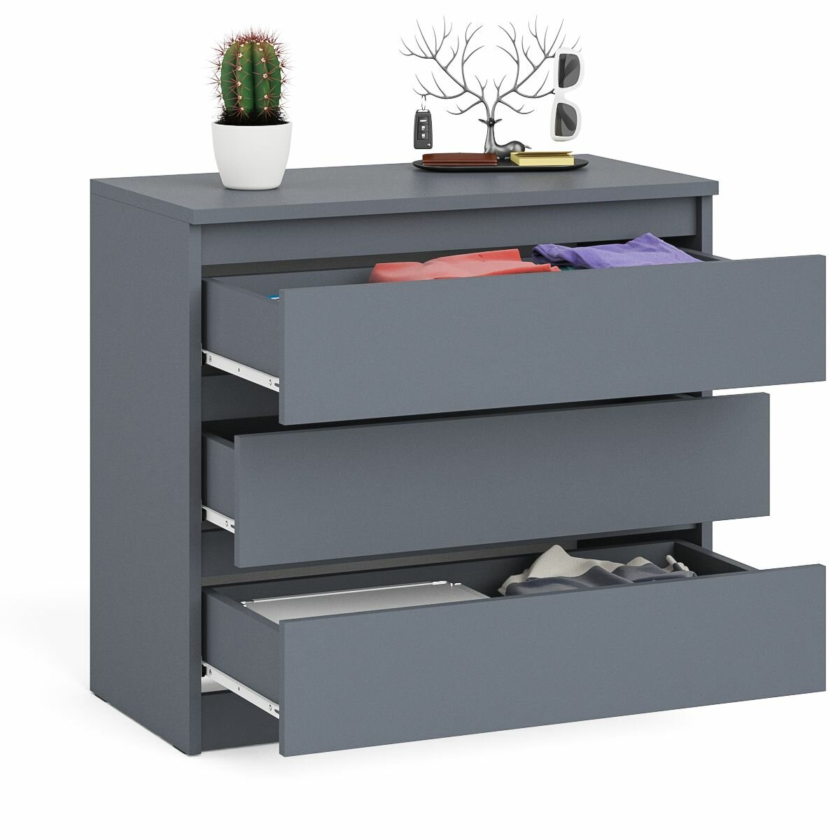 - Классический комод с тремя выдвижными ящиками на роликовых направляющих.