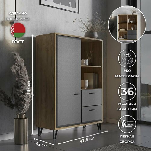 Комод-тумба 97,5х41,8х138см GRACE KOM1D2S (Дуб наварра/Графит), 3уп.: сравнение цен, характеристики, фото, актуальное наличие и цены.