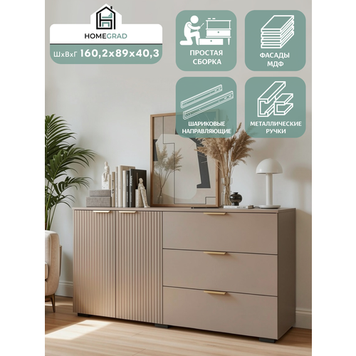 Продуманная конструкция комода включает несколько вместительных ящиков, которые обеспечат удобное хранение ваших вещей. Благодаря шариковым направляющим, каждый ящик открывается плавно и бесшумно, даря вам комфорт при каждом использовании. Высококачественные материалы гарантируют долговечность и надежность изделия. Фасады из МДФ в цвете мокко отличаются особой прочностью и устойчивостью к механическим повреждениям, а корпус из ЛДСП обеспечивает стабильность конструкции. Металлические ручки не только добавляют изысканности внешнему виду, но и служат долго, не теряя своего первоначального блеска.