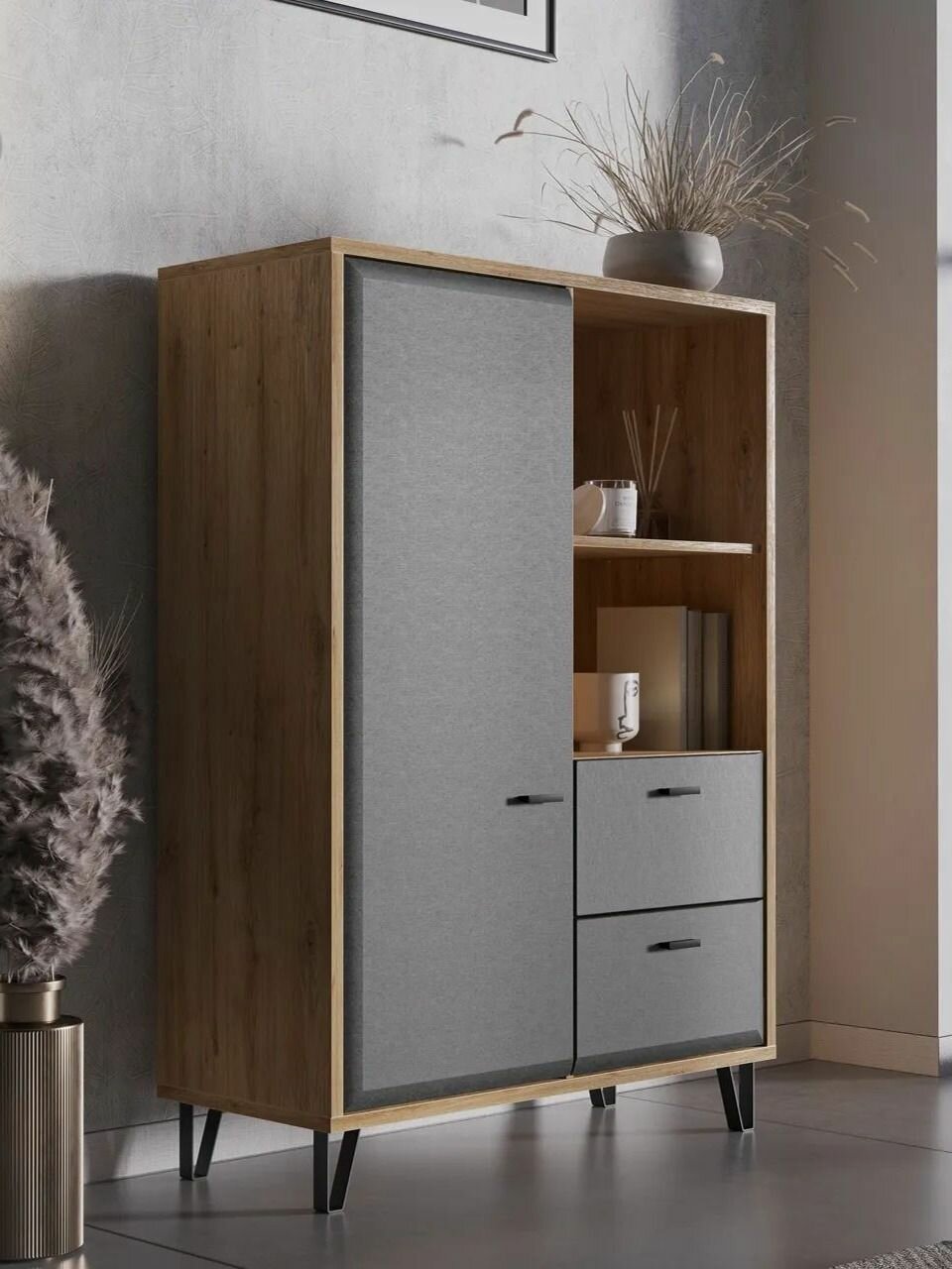 - Фасад: Дверь, панель ящика – плита МДФ односторонне лакированная облицованная пленкой ПВХ. Цвет плиты МДФ – Белый. Цвет пленки ПВХ – Графит.