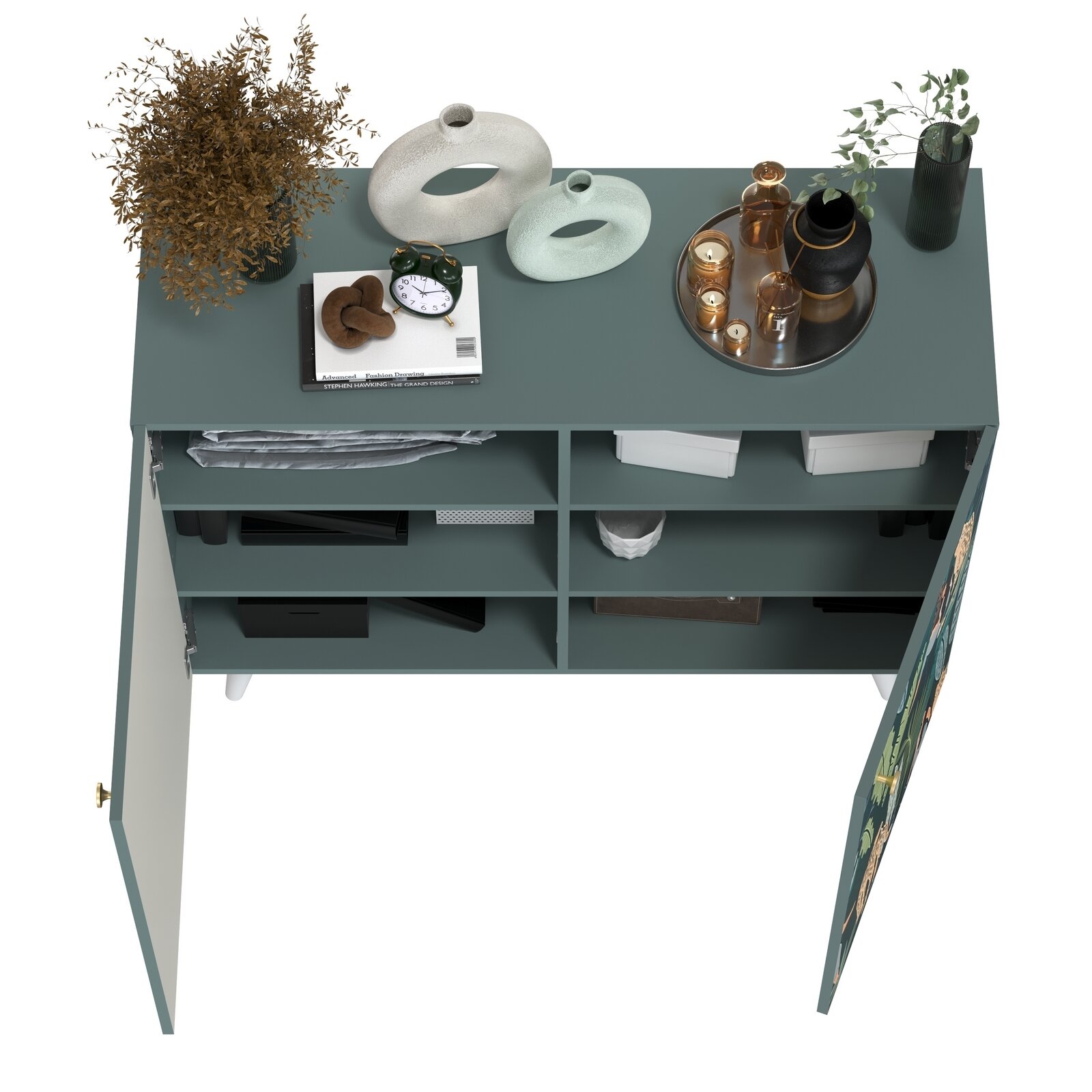 Купить Комод-тумба Моби Либера 16.230.01 пасифай/белый, 115,3х42,6х92,3 см, фасады с рисунком Тропический лес, две дверки с доставкой по всей России.