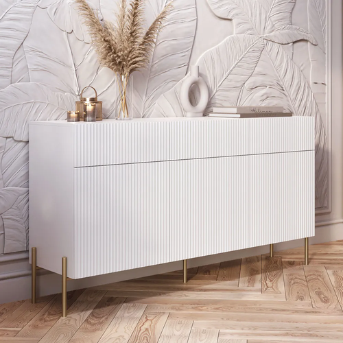 Комод Линси - это не просто мебель, это истинное произведение искусства, способное преобразить вашу гостиную или прихожую. Его элегантный дизайн в духе арт-деко с белым корпусом, матовыми фасадами и золотистыми ножками сразу привлекает внимание и создает атмосферу изыска и роскоши. Комод Линси разработан с учетом всех современных требований к функциональности и комфорту. Он оснащен удобным механизмом push-to-open, который позволяет легко открывать и закрывать дверцы без лишних усилий.