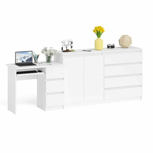 Комод-тумба Мори МК1600 четыре ящика и дверки со столом компьютерным МС-6 тумба справа.