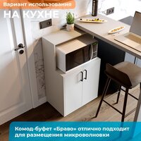Универсальный комод Браво-1 подходит и для дома и для офиса! Используйте отдельно или с другой мебелью бренда домаклево. Этот комод-буфет имеет две дверцы и полку для скрытого хранения, нишу под микроволновку, принтер или другую технику, а также верхнюю полку для выставления любимых вещей. Разработанный для самостоятельного использования по всему дому, он также хорошо сочетается с другой мебелью домаклево, либо для согласования стиля, либо для создания более вместительных систем хранения. Благодаря отличительному внешнему виду и продуманному дизайну мебель домаклево хорошо сочетается как сама по себе, так и в композиции. Увеличьте объем вашего хранилища и создайте гармоничный внешний вид, создав свою собственную комбинацию для хранения необходимых вещей дома или офисе. Спрячьте или выставьте напоказ свои вещи, объединив открытое и закрытое хранилище.