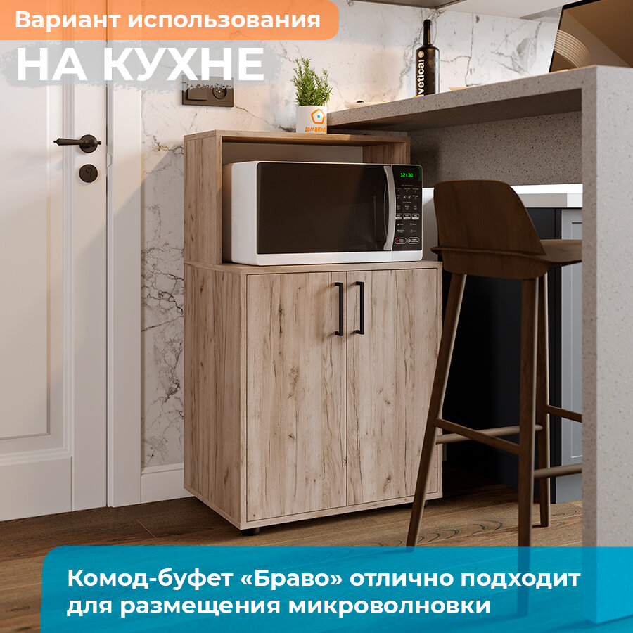 Универсальный комод Браво-1 подходит и для дома и для офиса! Используйте отдельно или с другой мебелью бренда домаклево. Этот комод-буфет имеет две дверцы и полку для скрытого хранения, нишу под микроволновку, принтер или другую технику, а также верхнюю полку для выставления любимых вещей. Разработанный для самостоятельного использования по всему дому, он также хорошо сочетается с другой мебелью домаклево, либо для согласования стиля, либо для создания более вместительных систем хранения. Благодаря отличительному внешнему виду и продуманному дизайну мебель домаклево хорошо сочетается как сама по себе, так и в композиции. Увеличьте объем вашего хранилища и создайте гармоничный внешний вид, создав свою собственную комбинацию для хранения необходимых вещей дома или офисе. Спрячьте или выставьте напоказ свои вещи, объединив открытое и закрытое хранилище.