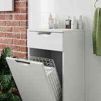 Комод, тумба для ванной комнаты, FAURAplus Люкс (Толедо) 40, с корзиной для белья, белый, глянцевый.: сравнение цен, характеристики, фото, актуальное наличие и цены.
