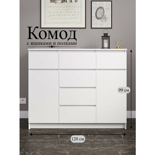 Комод высокий с ящиками и полками для одежды и вещей, 120х99х40 см, Белый: сравнение цен, характеристики, фото, актуальное наличие и цены.