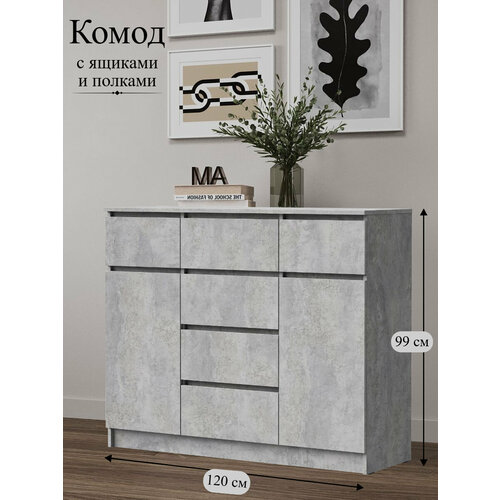 Комод высокий с ящиками и полками для одежды и вещей Лето, 120х99х40 см, цемент светлый: сравнение цен, характеристики, фото, актуальное наличие и цены.