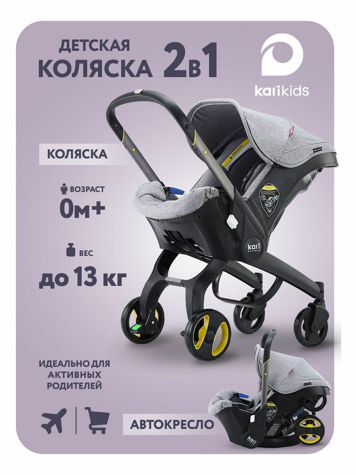 Купить Компактная коляска-автокресло для новорожденных 2 в 1, трансформер, серый, цвет серый с доставкой по всей России.