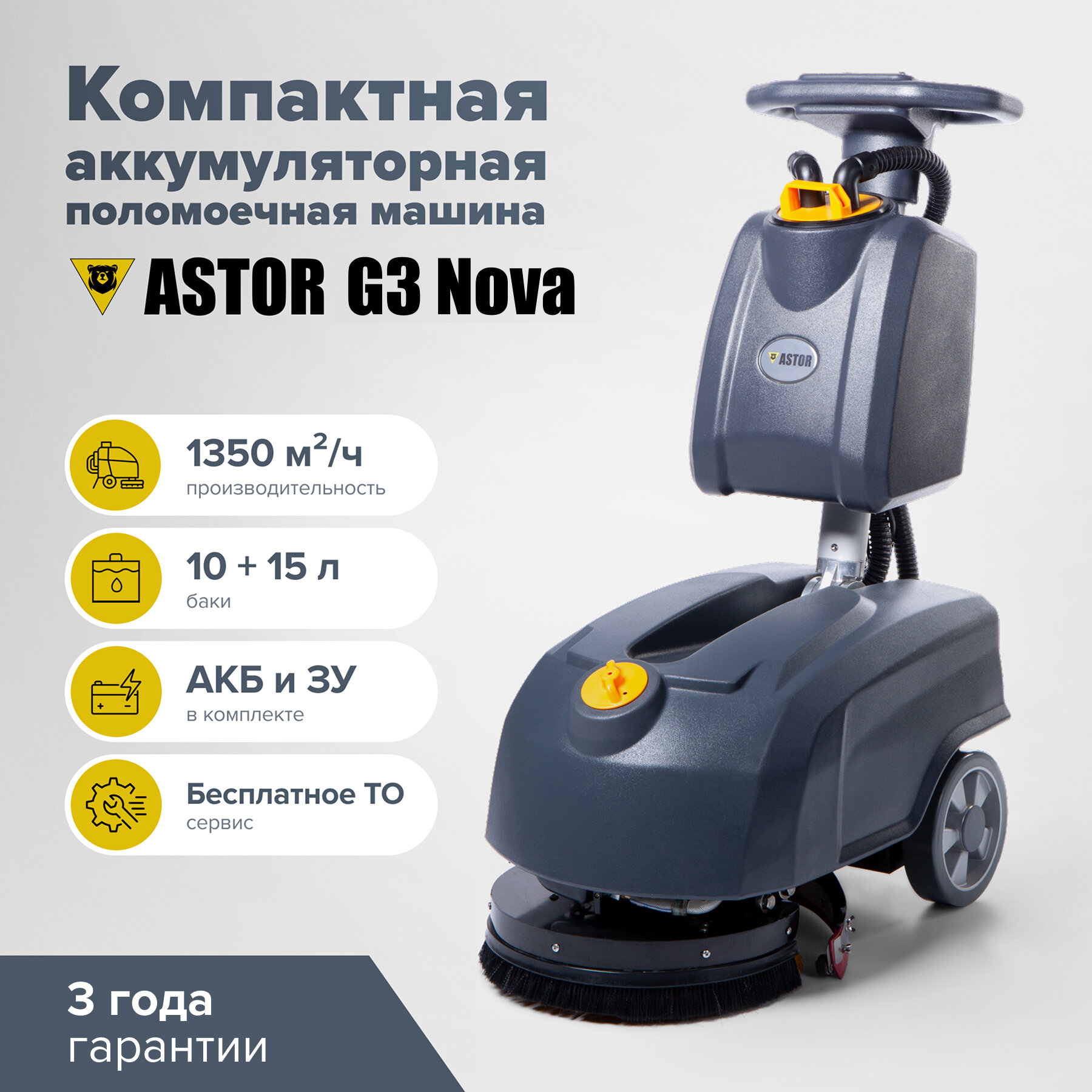 | Подробная комплектация | Щетка, водосборная балка, гелевые АКБ 32 а/ч - 2 шт, зарядное устройство |