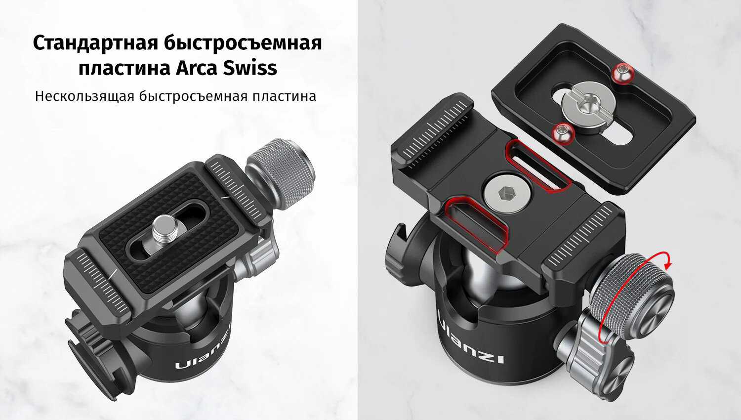 Шаровая голова U-80L от Ulanzi - компактное и надежное решение для съемки с быстросъемной площадкой Arca Swiss. Идеально подходит для фотографов и видеографов, которым важно быстрое крепление камеры и дополнительного оборудования.