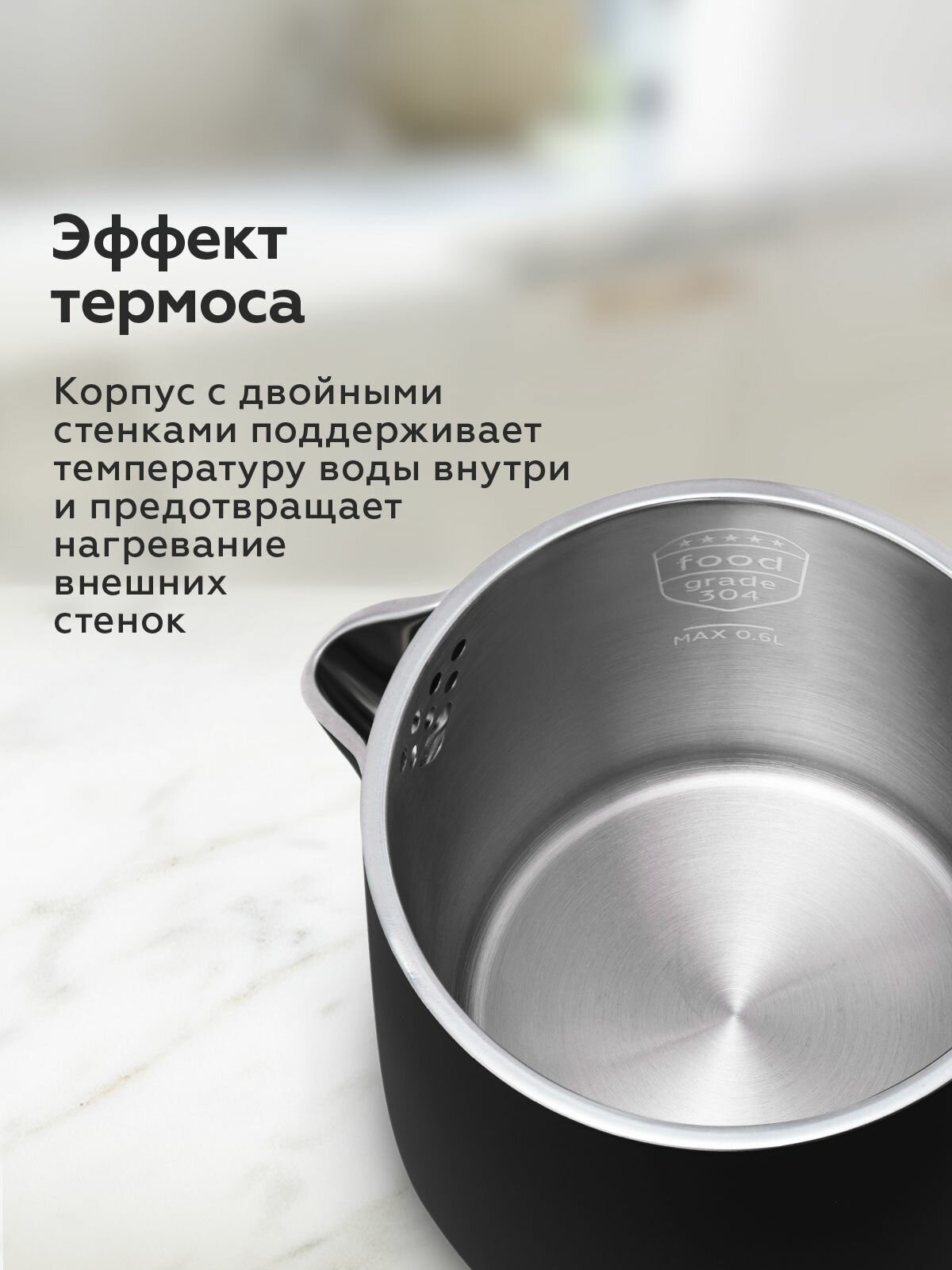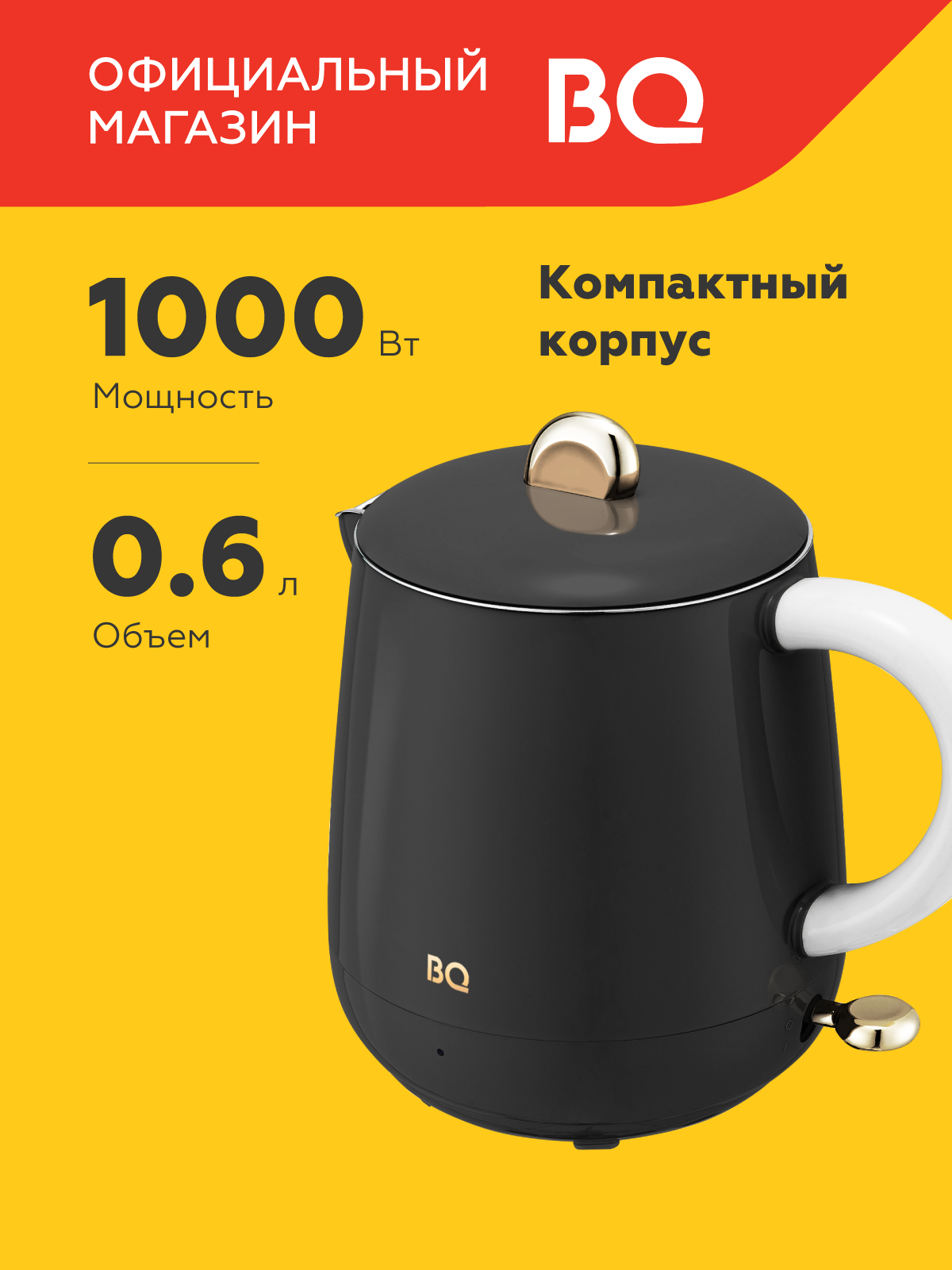 Купить Компактный чайник электрический BQ KT1717P Черный двухслойный 0.6 л 1000 Вт с доставкой по всей России.