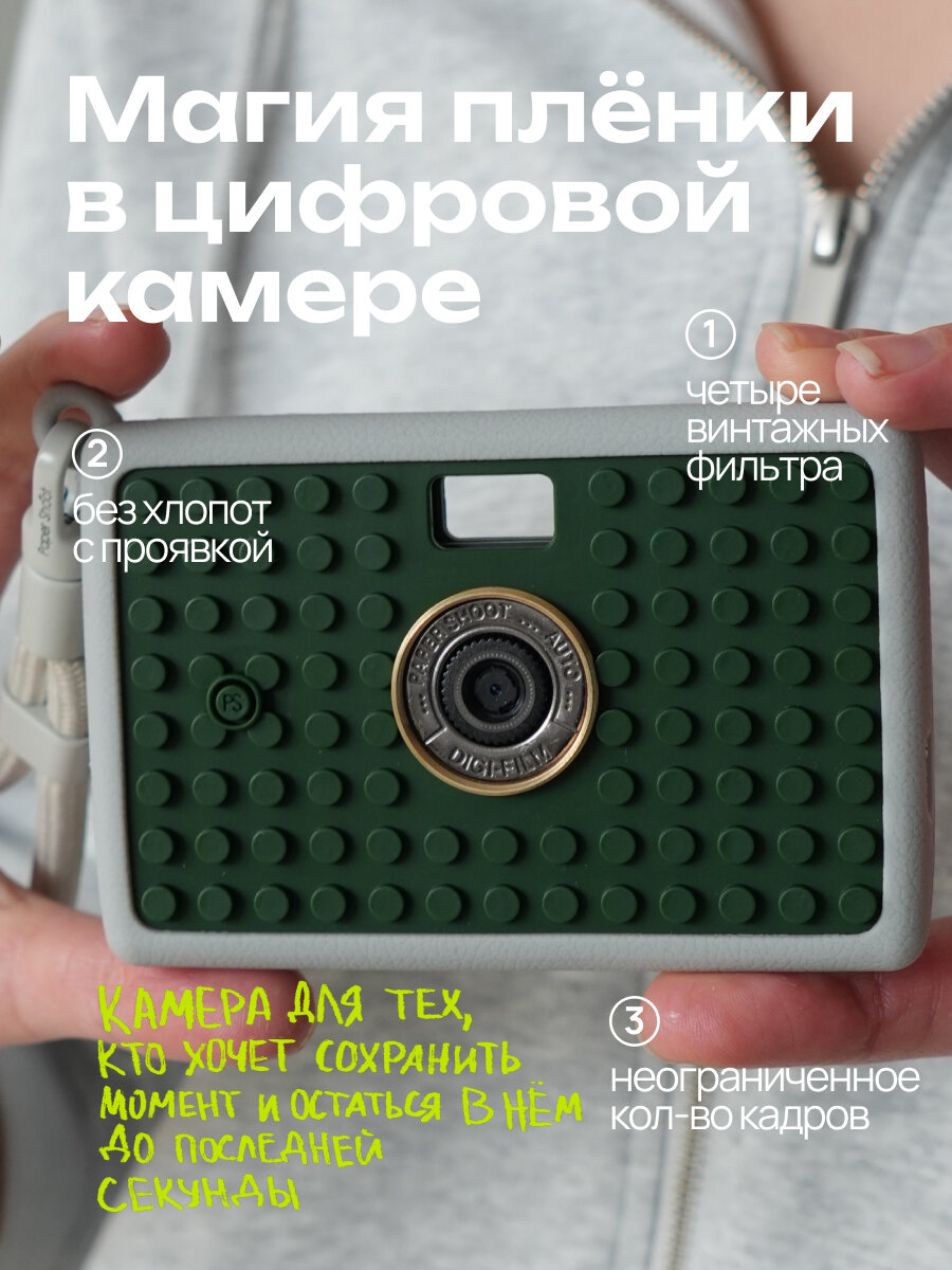 PaperShoot — это магия плёнки в цифровой камере. У пашпа четыре винтажных фильтра и нет экрана, что помогает фокусироваться на моменте, а не на идеальном кадре. При желании, вы можете изменить вид камеры: выберите один из 50+ вариантов универсальных кейсов.