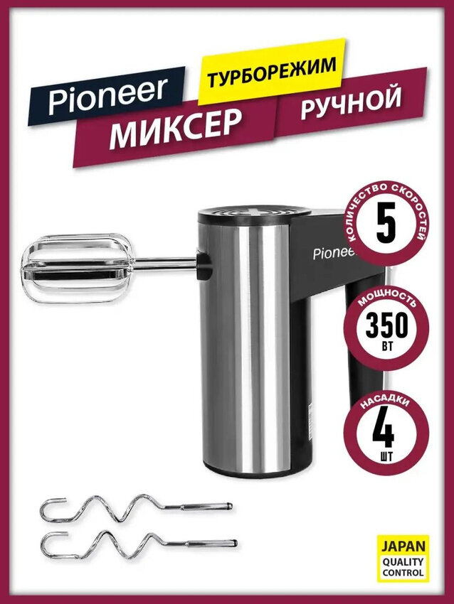Компактный ручной миксер Pioneer MX320 с турборежимом, 5 скоростей, 2 насадки, 350 Вт: сравнение цен, характеристики, фото, актуальное наличие и цены.