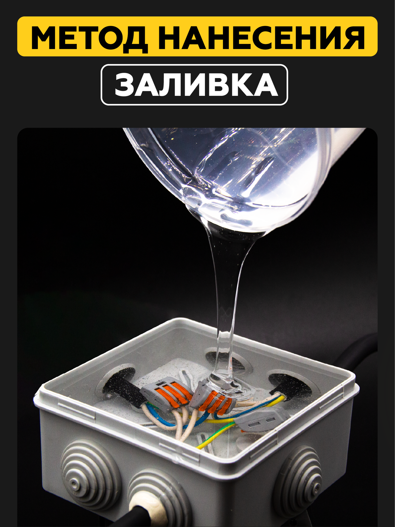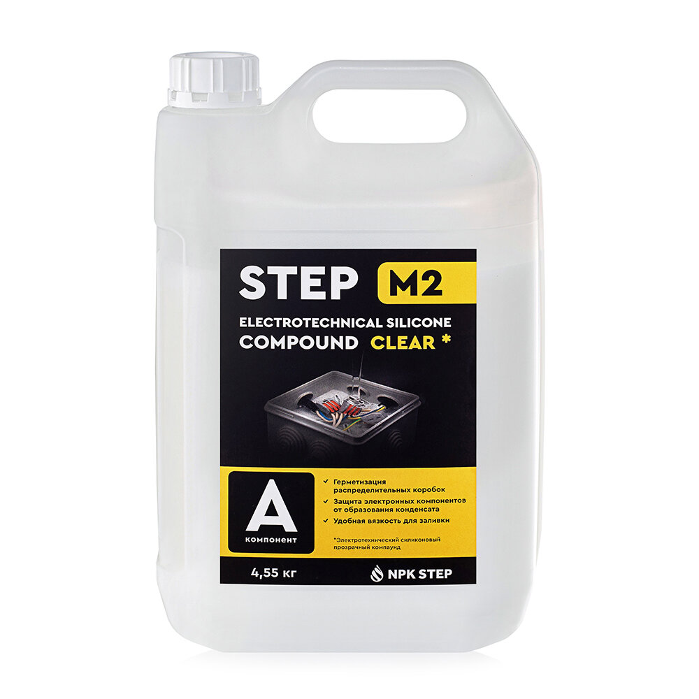 Прозрачный силиконовый удаляемый компаунд STEP-M2 позволяет создать среду, которая полностью исключит попадание влаги внутрь распределительной коробки. Как известно, незащищённая распаечная коробка, используемая в уличном освещении, со временем наполняется водой: на проводах происходит окисление, вслед за этим нагревание и отгорание. Компаунд имеет степень защиты от влаги IP68 и предотвращает все возможные проблемы, что в свою очередь многократно увеличивает срок службы изделия. Заливочный компаунд заполняет все щели.