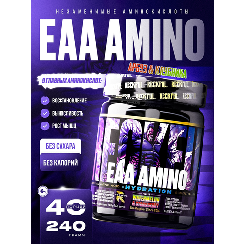 Reckful Amino EAA + Electrolytes в порошке со вкусом арбуза с клубникой.