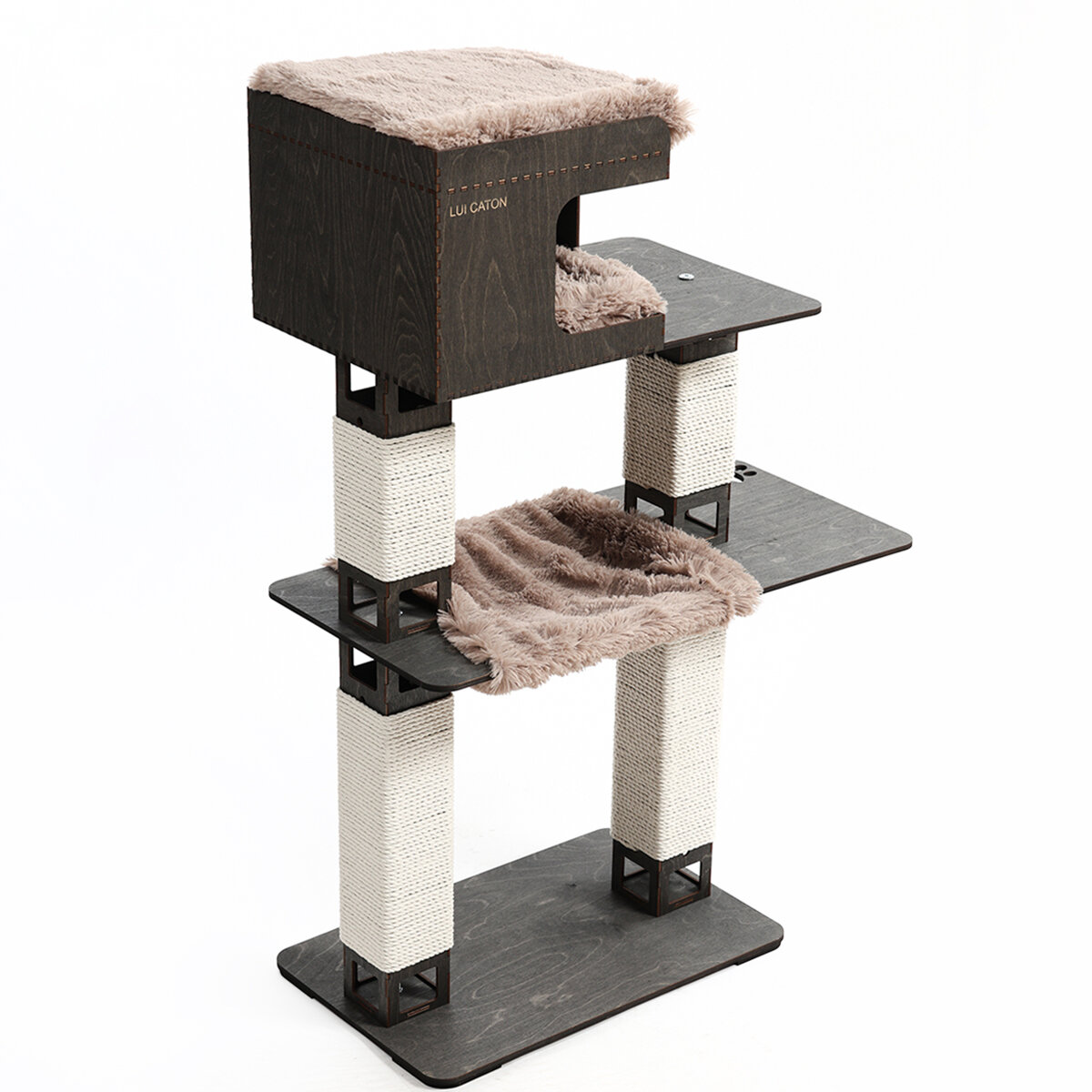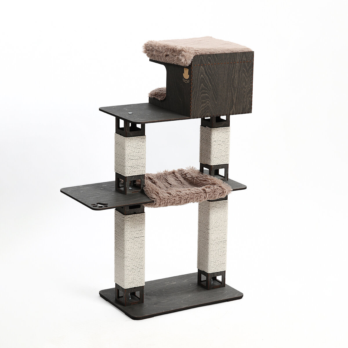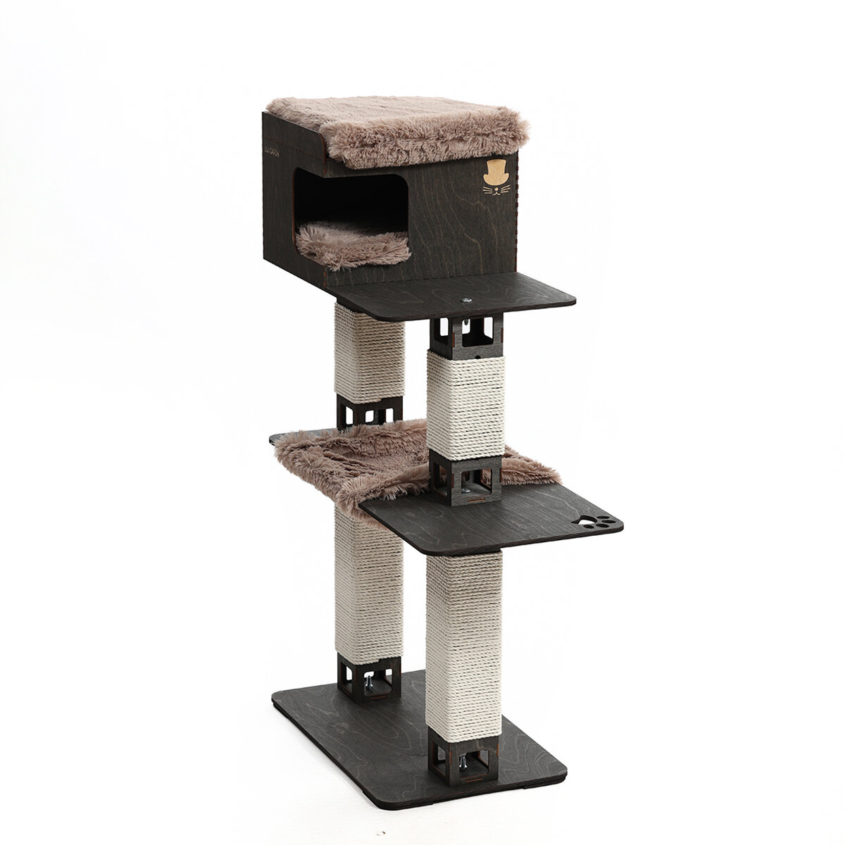 Домик для кошки - новинка от LUI CATON с домиком, гамаком, когтеточкой и лежанками. Это новая модель отличается широкой функциональностью и стильным дизайном. Игровой комплекс имеет следующие размеры в собранном виде: 40х70х110 см. Игровой комплекс идеально подходит большинству пород кошек и котов. Очень интересен для котят и в тоже время удобен для пожилых кошек, которым не хочется или нельзя прыгать. Благодаря боковой полке кошка может без резких движений подниматься и спускаться по игровому комплексу. Плотная намотка джутового каната. Под брендом LUI CATON вы можете приобрести товары для животных ручной работы наивысшего качества.