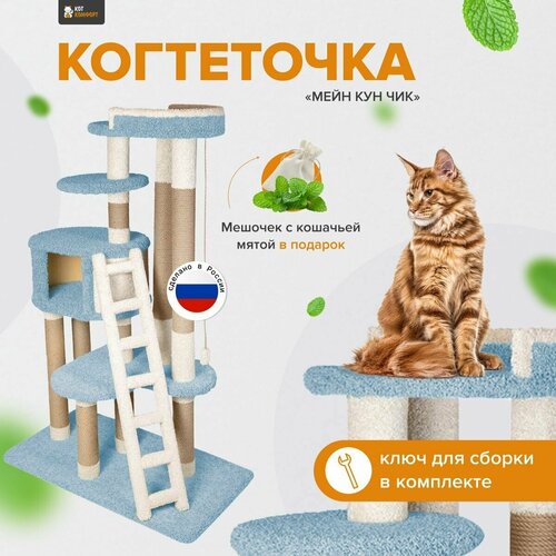Купить Комплекс для кошек с домиком и лежанкой для кошки когтеточка «Мейн Кун Чик» голубой с доставкой по всей России.