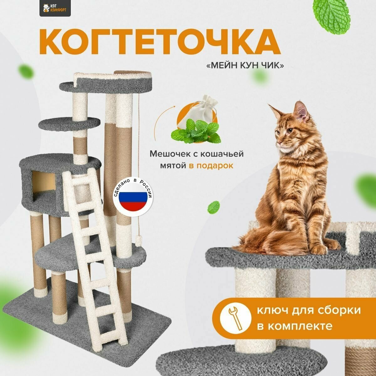 Комплекс для кошек с домиком и лежанкой для кошки когтеточка»Мейн Кун Чик» графит: сравнение цен, характеристики, фото, актуальное наличие и цены.