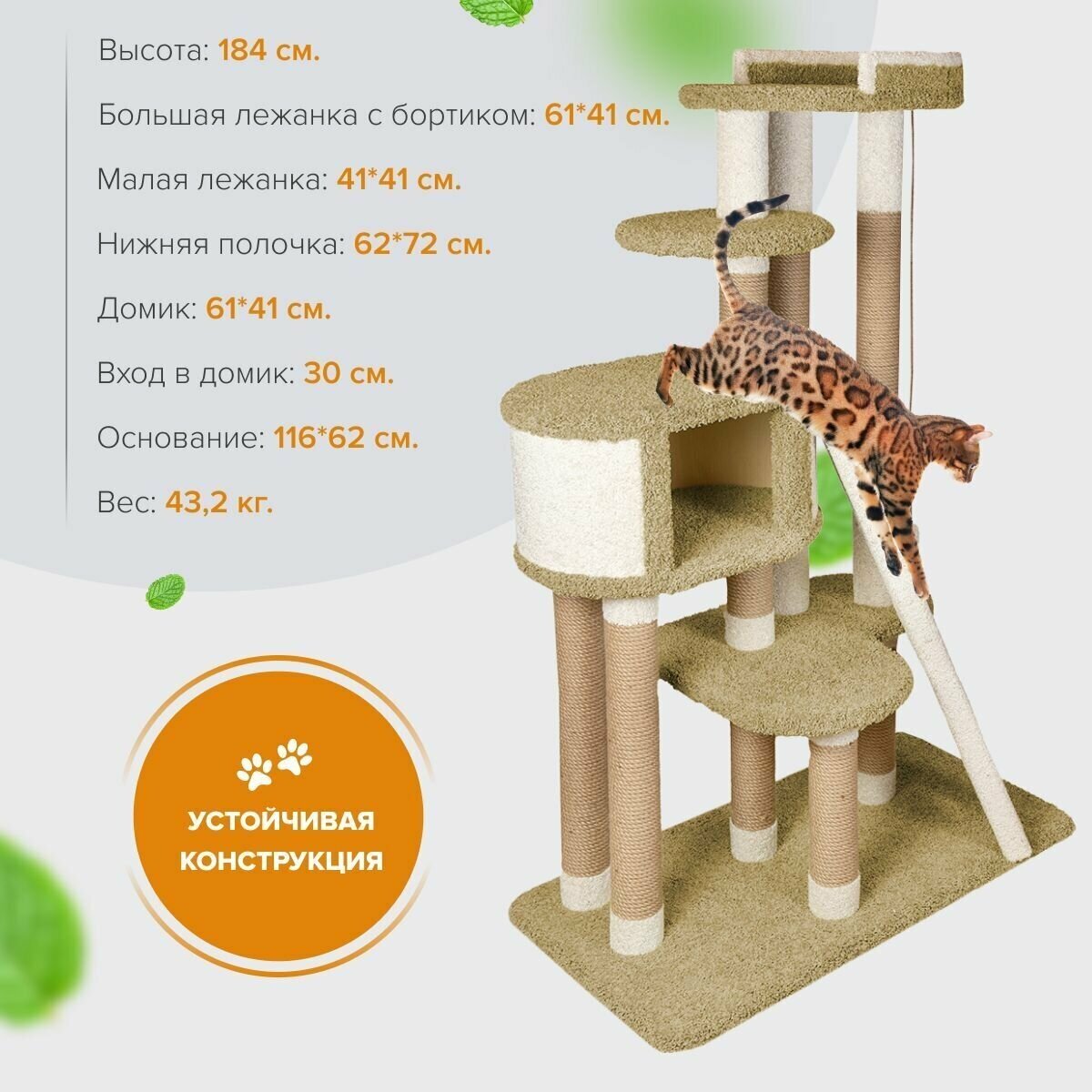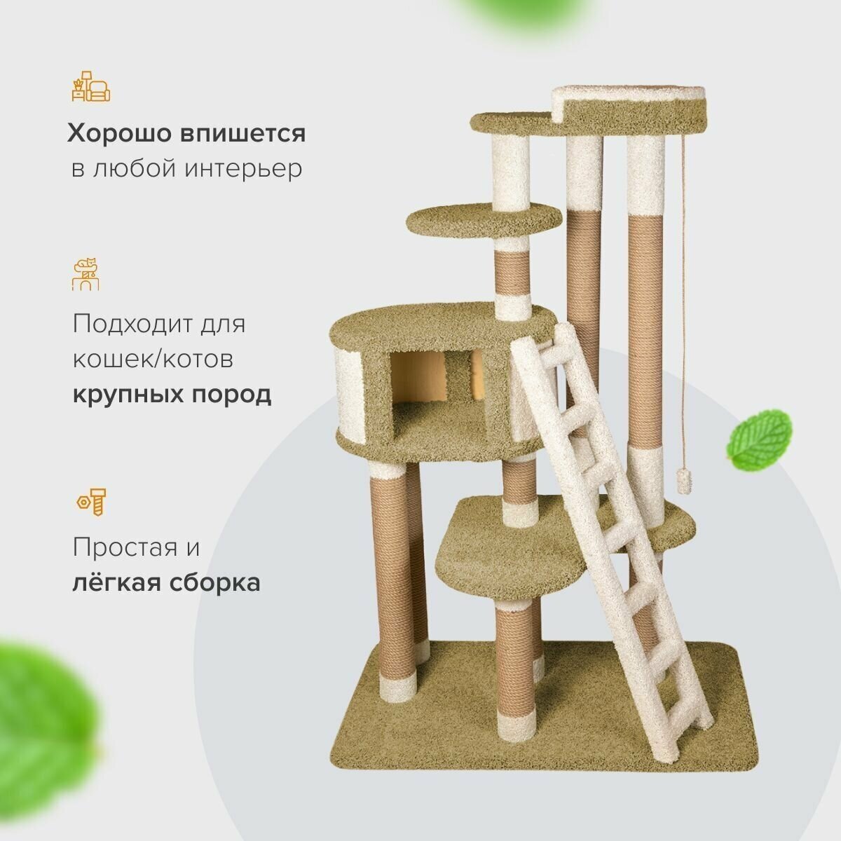 Купить Комплекс для кошек с домиком и лежанкой для кошки когтеточка «Мейн Кун Чик» оливковый с доставкой по всей России.