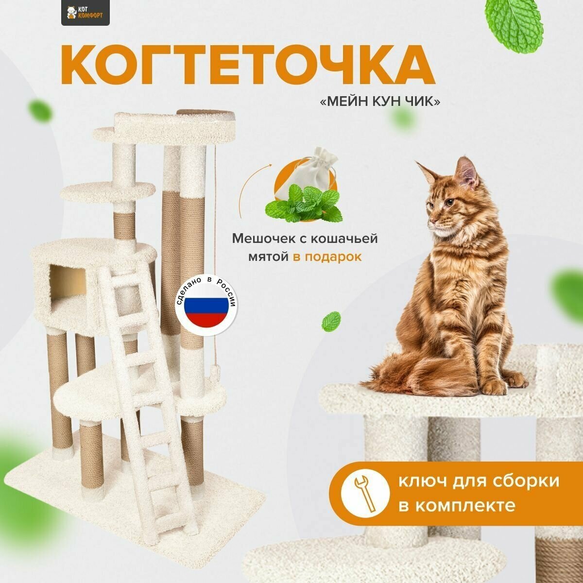 Купить Комплекс для кошек с домиком и лежанкой для кошки когтеточка»Мейн Кун Чик» ваниль с доставкой по всей России.