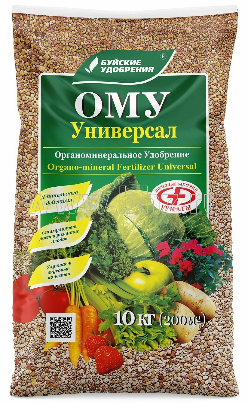 Комплексное гранулированное органоминеральное удобрение ОМУ Универсал от Буйских удобрений - это идеальное решение для всех любителей садоводства и огородничества. Удобрение представлено в упаковках по 10 кг, что делает его легко доступным и удобным в использовании. Общее количество - 20 кг, что позволяет обеспечить полноценное питание для различных культур. Это универсальное средство подходит для разнообразных растений, включая плодово-ягодные, овощные, цветочные, декоративные деревья и кустарники. С помощью данного удобрения вы сможете значительно повысить здоровье и урожайность ваших растений, так как оно содержит все необходимые элементы для их полноценного развития. Гранулированная форма обеспечивает равномерное распределение питательных веществ в почве, что является важным фактором для роста и цветения. Применение органоминерального удобрения позволяет улучшить структуру почвы и повысить её плодородие. Этот продукт также способствует активному развитию корневой системы, что является залогом крепкого роста растений. Удобство в использовании позволяет вам быстро и легко подкармливать ваши растения, чтобы они радовали вас обильным урожаем и ярким цветением. Удобрение подходит для применения на всех типах участков, будь то сад, огород или газон. Благодаря своей комплексной формуле, ОМУ Универсал идеально сбалансировано, что гарантирует растениям необходимые микроэлементы и придает им силу и здоровье. Не упустите возможность создать прекрасный сад или урожайный огород с помощью удобрения от Буйских удобрений. Комплексное гранулированное органоминеральное удобрение - это ваш верный помощник в достижении успеха в садоводстве, обеспечивая здоровье и декоративность ваших культур. Состав: N (%): 7; P2O5 (%): 7; K2O (%): 8; MgO (%): 1.5; S (%): 3.67 Микроэлементы: Cu-0.01; Zn-0.01; Fe-0.02; Mn-0.05; B-0.02 Гуминовые соединения: 11 Не содержит хлор (Cl). Полезные бактерии: Bacillus Subtilis – 700 тыс. КОЕ/г, Bacillus Mucilaginosus – 300 тыс. КОЕ/г 50-100 г на кв. м при внесении вразброс с последующей перекопкой почвы 10 г на литр грунта при приготовлении грунта для выращивания рассады 20-60 г при посадке локальное внесении в посадочную лунку ОМУ "Универсал" рекомендуется применять в качестве основного удобрения при подготовке почвы для выращивания полевых, садовых, огородных и декоративных культур, для выращивания рассады, а также декоративных кустарников. ОМУ - комплексное гранулированное удобрение пролонгированного действия, производится на основе низинного торфа, в состав которого входят гуминовые вещества, макро- и микроэлементы. ОМУ работает ранней весной, когда растениям необходима стимуляция роста, летом - в период активной вегетации и осенью, укрепляя растения на зиму благодаря его пролонгированному действию. В процессе производства ОМУ минеральные элементы питания закрепляются в органической грануле. Более подвижные азот и калий не вымываются поливными водами из гранулы, как это происходит с минеральными удобрениями, а фосфор не образует нерастворимых соединений в почвенном растворе. Органоминеральная гранула – это микрокладовая питательных элементов для растений. За счет этого коэффициент использования питательных элементов, содержащихся в ОМУ, в 1,5 раза выше по сравнению с минеральными удобрениями, где усваивается максимум 25–30% питательных веществ, в то время как