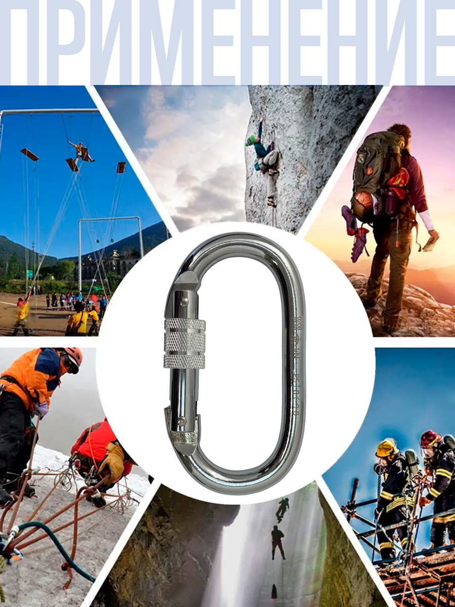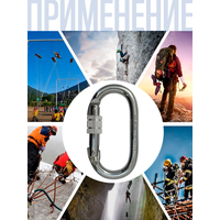 Стальной карабин овальной формы. Комплект 10 шт. Может применяться для организации самостраховки, станций, присоединения страховочных устройств и т. д. Симметричная форма карабина исключает отклонение от основной оси при нагрузке, что особенно важно при работе с блок-роликами и устройствами с двумя симметричными щечками. Винтовая муфта максимально снижает риск самопроизвольного раскрытия карабина. Может использоваться в скалолазании, альпинизме, спелеологии и промышленном альпинизме. Стальной карабин обладает высокой прочностью и износостойкостью. Размеры, мм - 59х111 Вес, г - 162 Форма карабина - овальная Тип защёлки - с резьбовой муфтой Форма защёлки - прямая Мах нагрузка в продольном направлении, kN - 25 Мax продольная нагрузка с открытой защёлкой, kN - 8 Нагрузка в поперечном направлении, kN - 8 Ширина раскрытия карабина, мм - 16 Сертификат - ЕАС