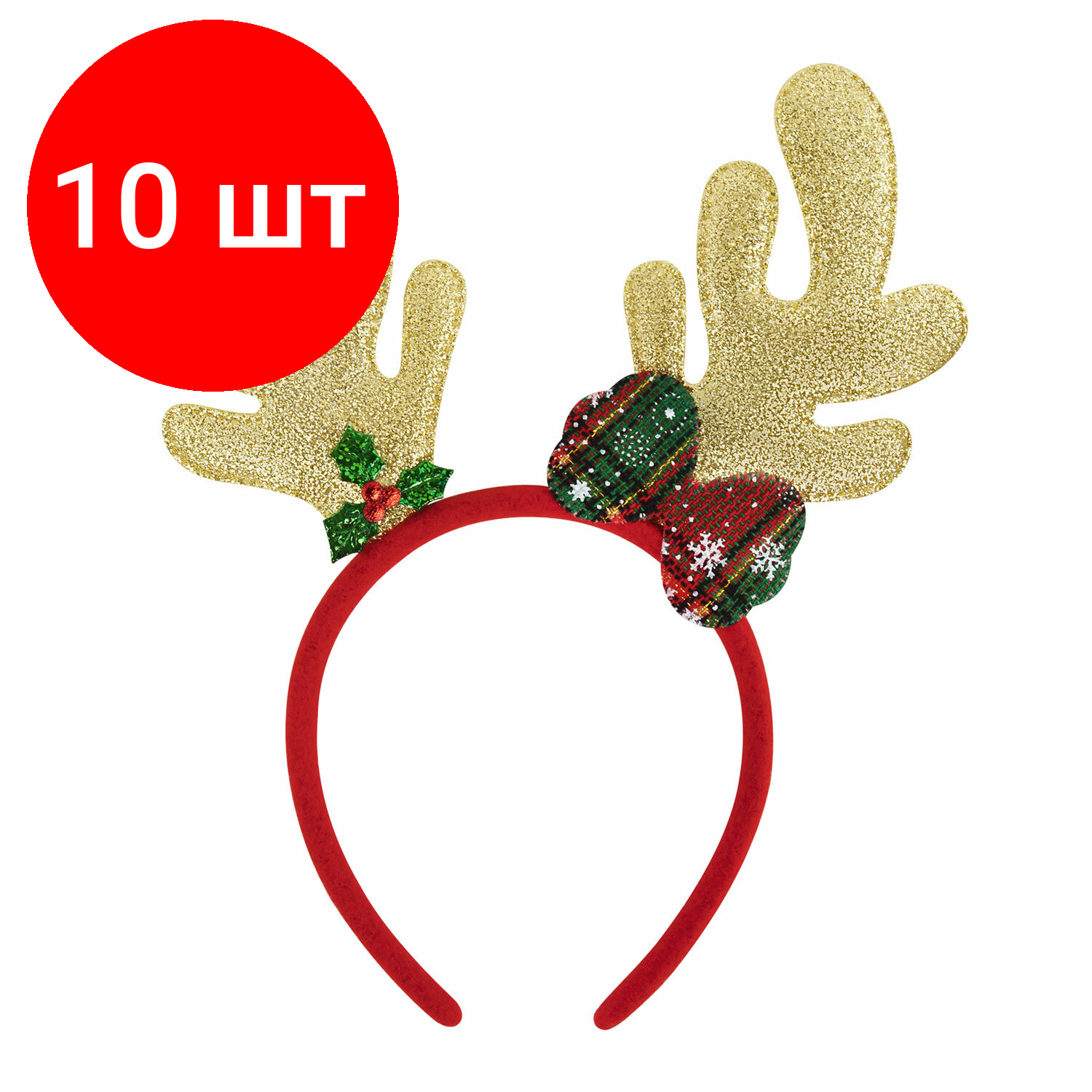Комплект 10 шт, Ободок новогодний с рожками, 24.5х21 см, пластик, цвет: красный/золотистый, золотая сказка, 592005: сравнение цен, характеристики, фото, актуальное наличие и цены.