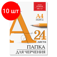 Купить Комплект 10 шт, Папка для черчения А4, 210х297 мм, 24 л, 200 г/м2, без рамки, ватман гознак КБФ, BRAUBERG, 129255 с доставкой по всей России.