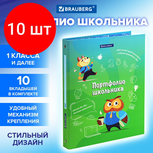 Купить Папка-портфолио школьника Brauberg «Отличник», 4 кольца, 20 файлов, 10 вкладышей, 7БЦ матовая (115240), 10 уп. с доставкой по всей России.