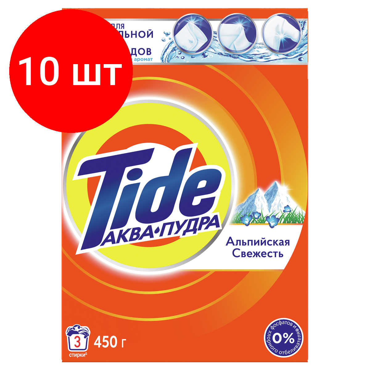 Комплект 10 шт, Порошок для машинной стирки Tide «Альпийская свежесть», 450г: сравнение цен, характеристики, фото, актуальное наличие и цены.