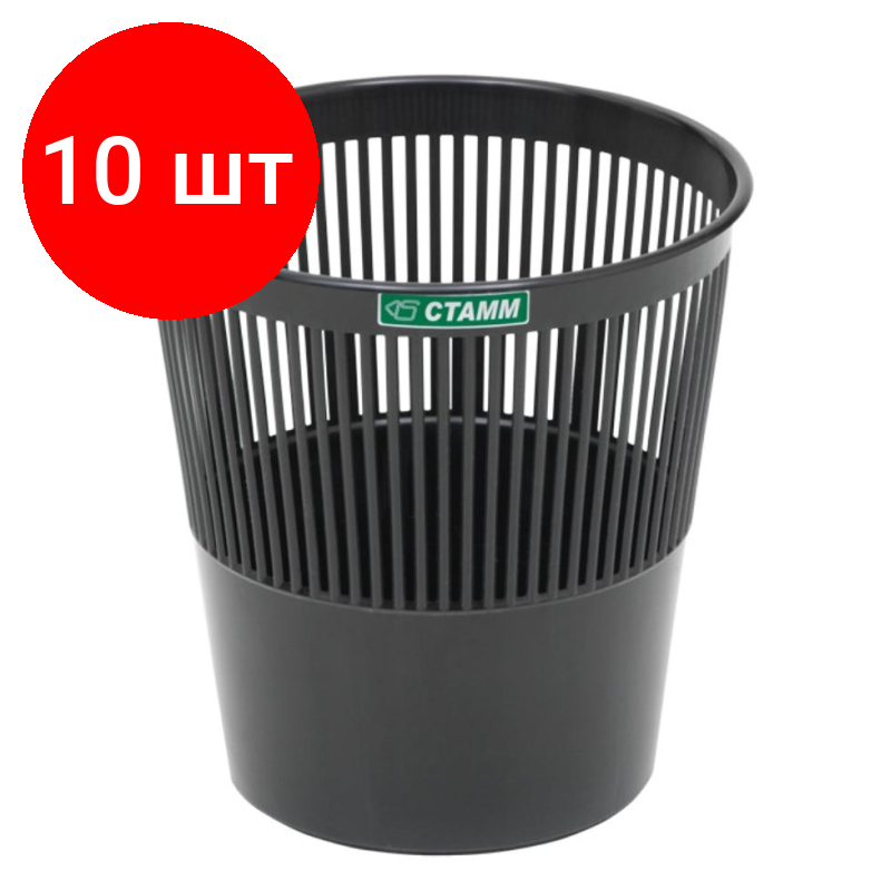 Комплект 10 штук, Корзина для мусора офисная 9л пластик, черная СТАММ КР21: сравнение цен, характеристики, фото, актуальное наличие и цены.