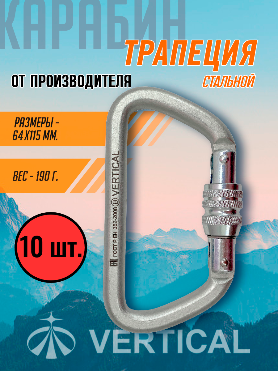 Комплект 10 штук. Стальной карабин с винтовой муфтой, трапеция. Вертикаль Vertical: сравнение цен, характеристики, фото, актуальное наличие и цены.