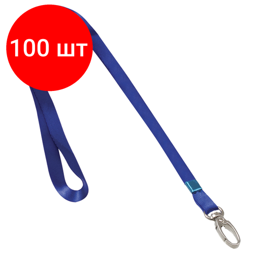Купить Комплект 100 шт, Лента для бейджей, 45 см, металлический карабин, синяя, BRAUBERG, 235737 с доставкой по всей России.