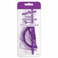 Комплект 100 шт, Набор чертежный малый юнландия «геометрия» (линейка 15 см, 2 треугольника, транспортир), фиолетовая шкала, 210739: сравнение цен, характеристики, фото, актуальное наличие и цены.