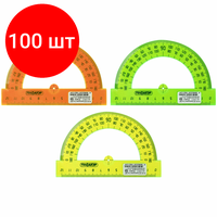 Комплект 100 шт, Транспортир 12 см, 180 градусов, пифагор, прозрачный, неоновый, ассорти, 210622: сравнение цен, характеристики, фото, актуальное наличие и цены.