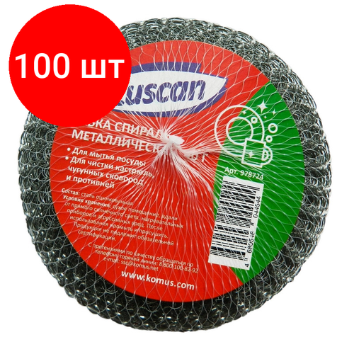 Комплект 100 штук, Губка мочалка спираль металлическая Luscan 110х110х40мм 40г: сравнение цен, характеристики, фото, актуальное наличие и цены.