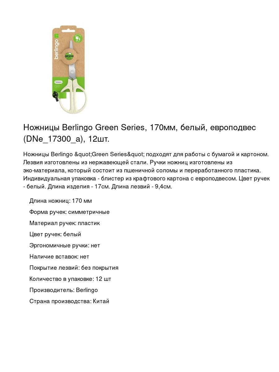 Произведенные в Китае, ножницы Berlingo Green Series сочетают в себе качество, функциональность и доступность.