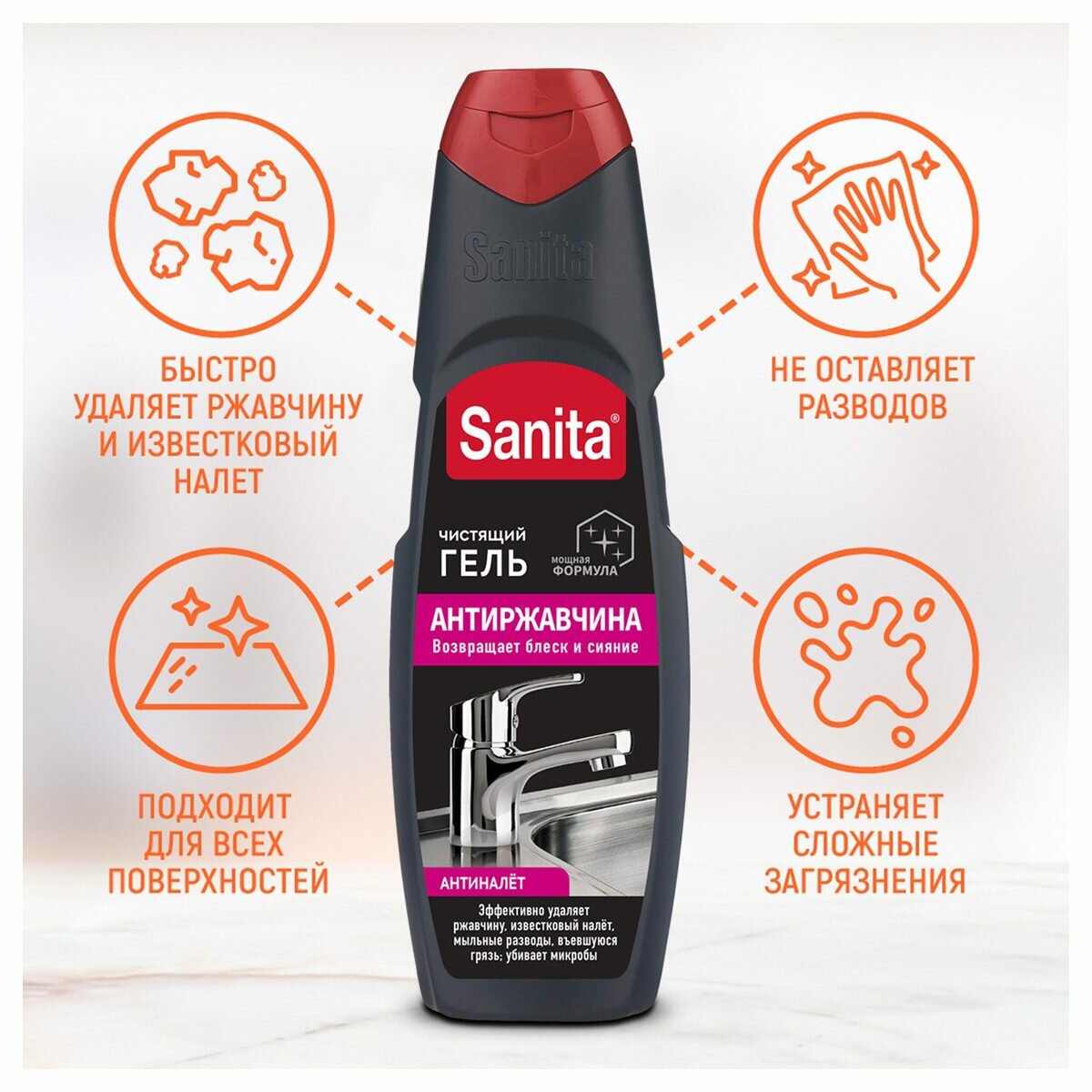 Купить Средство для сантехники Sanita «Антиржавчина», гель, 500г (8609), 12шт. с доставкой по всей России. Средство для сантехники Sanita «Антиржавчина», гель, 500г (8609), 12шт.: сравнение цен, характеристики, фото, актуальное наличие и цены.
