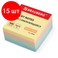 Купить Комплект 15 шт, Блок самоклеящийся (стикеры), BRAUBERG, пастельный, 76х76 мм, 400 листов, 4 цвета, 122856 с доставкой по всей России.