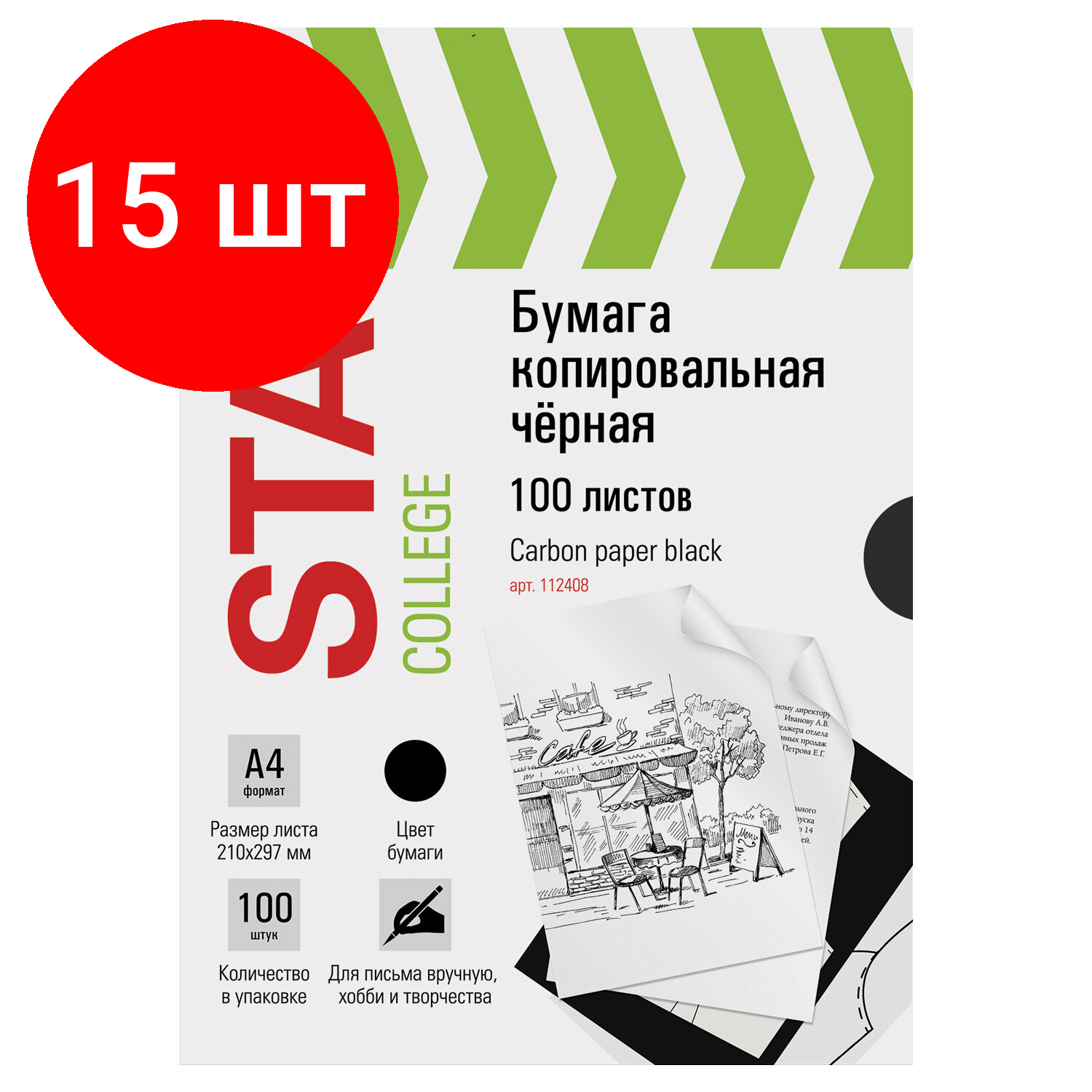 Комплект 15 шт, Бумага копировальная (копирка), черная, А4, 100 листов, STAFF, 112408: сравнение цен, характеристики, фото, актуальное наличие и цены.